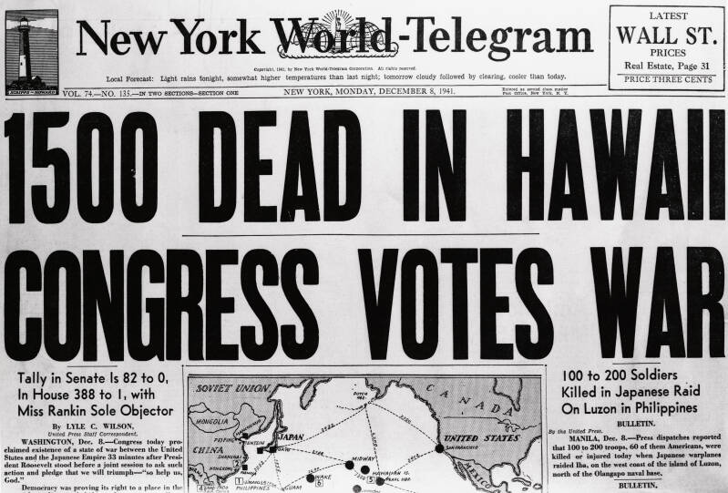 The United States joined World War II in 1941 after the attack on Pearl Harbor pictured in this newspaper. Kaczmarzyk was 24. He joined the army about three months later.